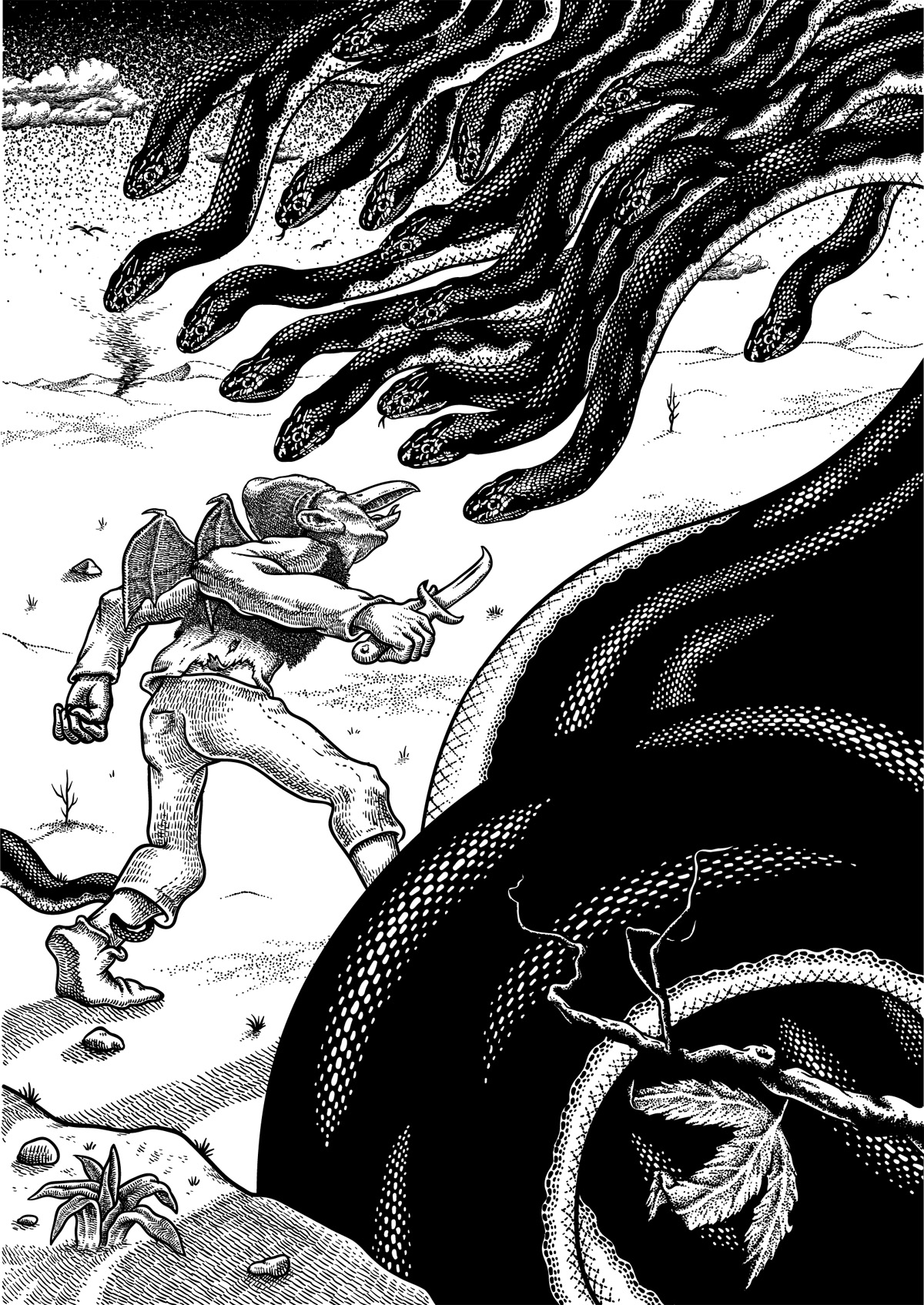 BATTLE WITH HYDRA II, 2017, silkscreen print on paper, 35 x 50 cm (13.7 x 19.7 in)